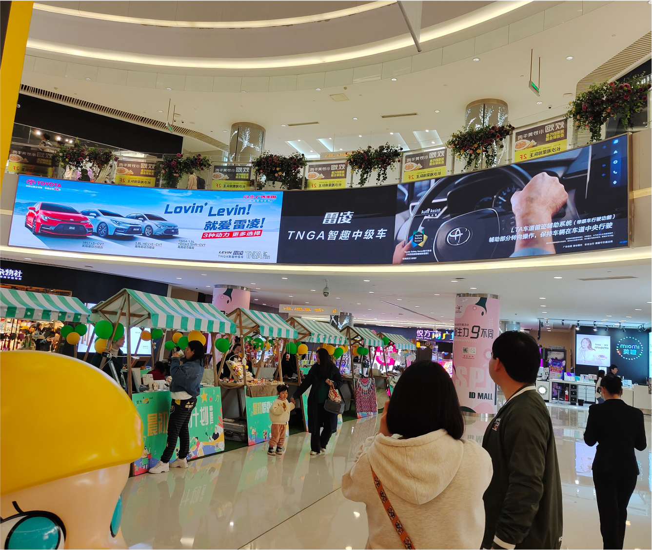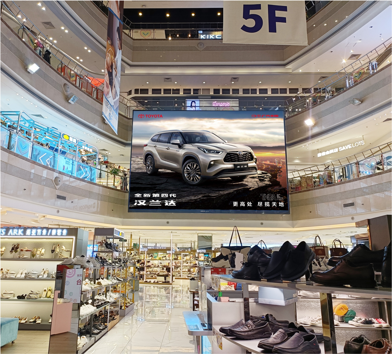 2. 在商场中庭LED大屏270度全方位立体曝光,让广告可见率、到达率带来有效流量。