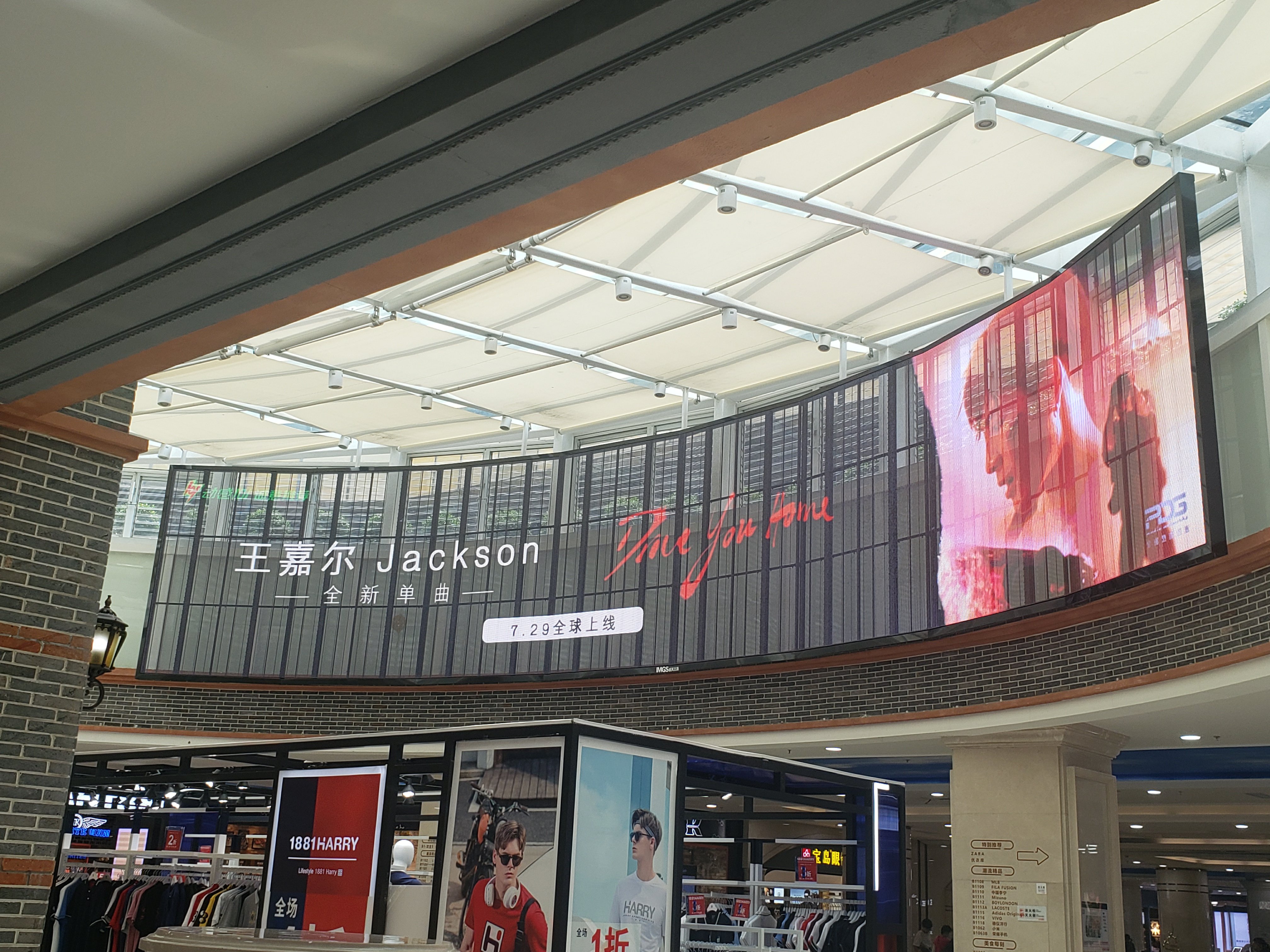 7月29日,优质IDOL王嘉尔Jackson携全新单曲《Drive You Home》空降全璟商业综合体中庭大屏。