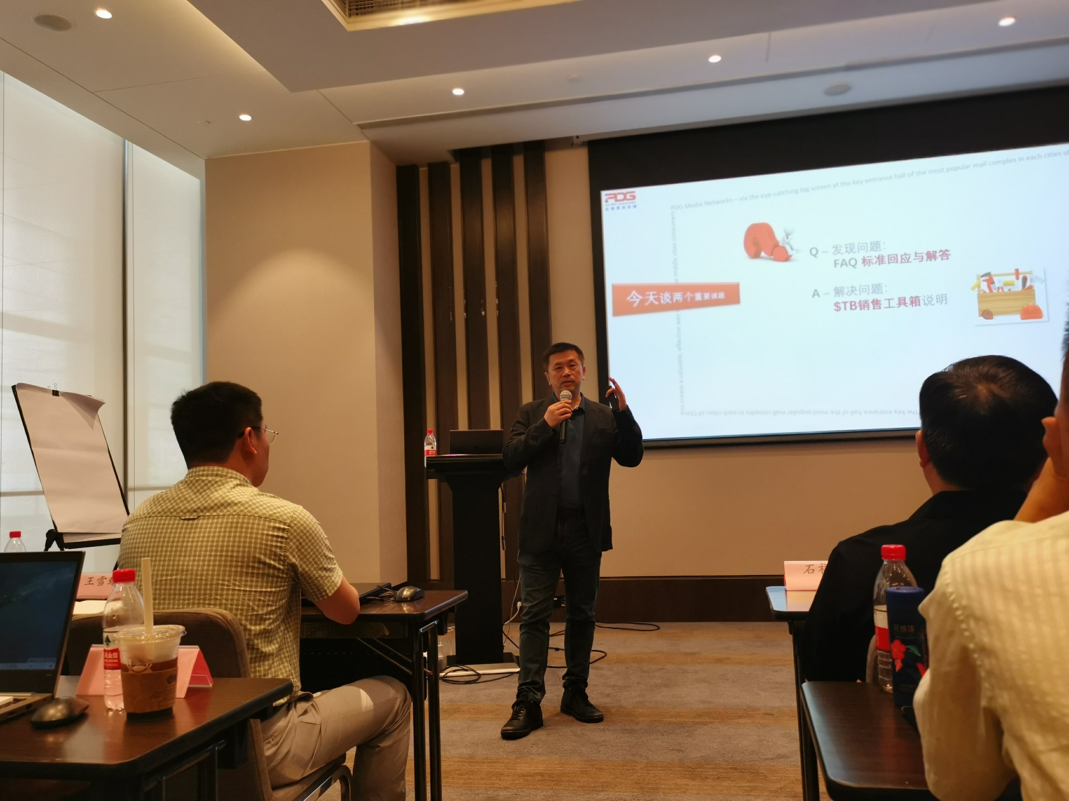 会议的第一个环节由资深传媒广告人文国基先生与Peter林老师为全璟人从各个维度,详细系统的做了销售培训。