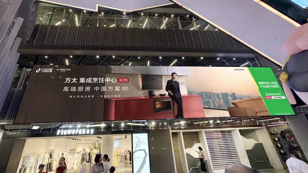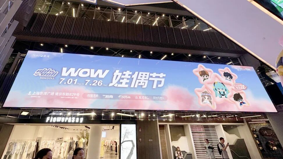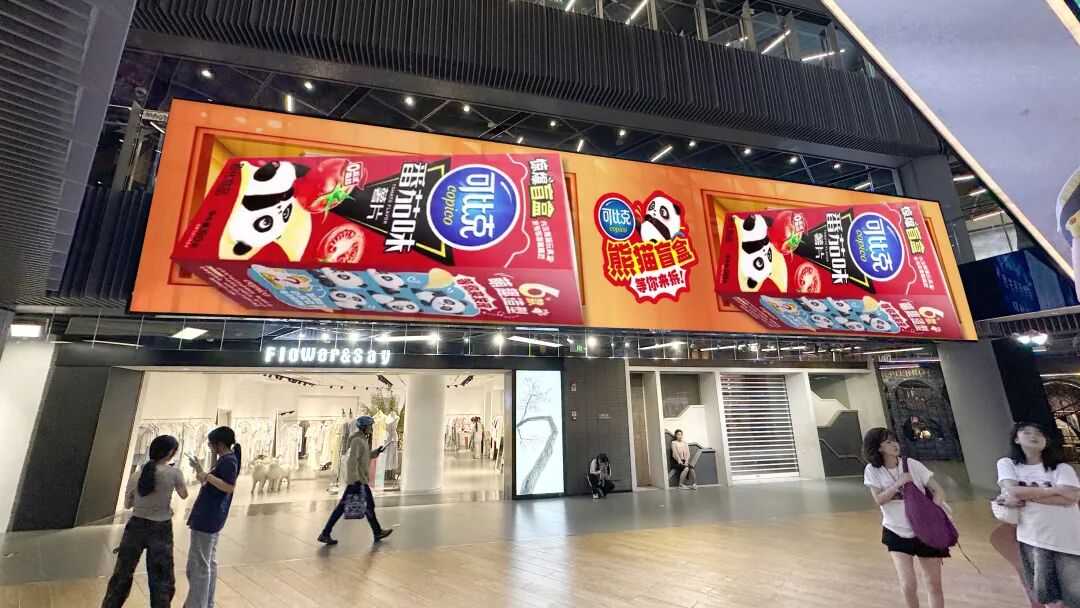 全璟传媒的新屏42㎡(14m×3m),占据上海世茂广场立体动线交汇点,无论在中庭还是电梯上下,都能被看见,天然适配商圈内品牌快闪、IP联名等高互动内容。